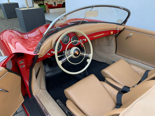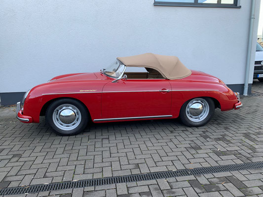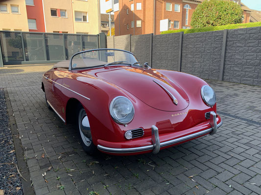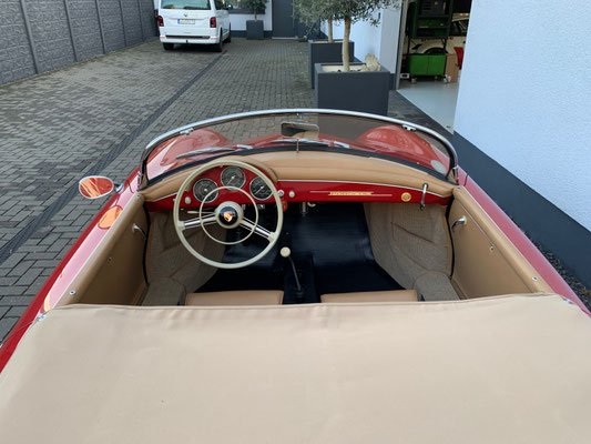 Seltener 356 A Speedster T2, Baujahr 1958, Rubinrot, Kunstleder braun, US Erstauslieferung 21.1.1958 vor 10 Jahren nach Europa importiert vollständig in höchster Qualität restauriert, Motor/Getriebe matching, Motor wurde im Zuge der Überholung verbessert 95 PS, die gesamte Technik wurde überarbeitet, Türen Haube sind matching einmaliger Karosserie Zustand perfekte Spaltmaße, Fahrzeug mit Classic Data Wertgutachten, neue TÜV H-Vollabnahme neuen Service, einmaliger Speedster der in dieser Qualität nur sehr selten zu finden ist.